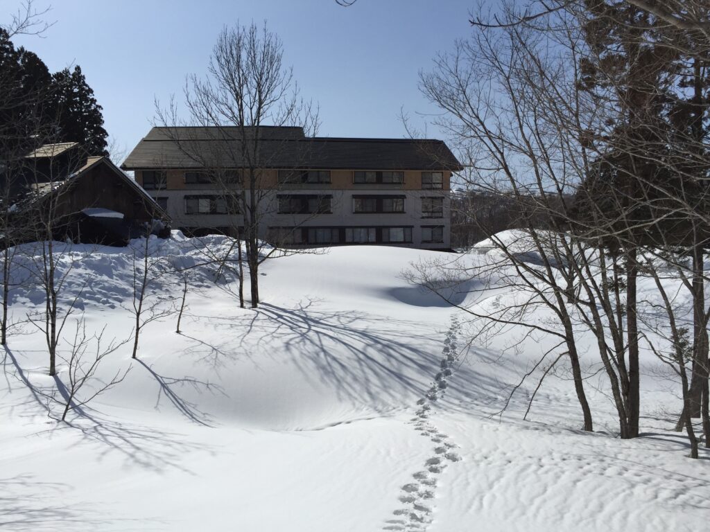 2026.02.16 朝食後の裏山散歩へご案内します 朝食後の1〜2時間、スノーシューを履いて裏山散歩しませんか。木々の目を観察したり、動物の足跡を探してガイドと一緒に歩きます。スノーシュー・ストックは当館でご用意します。お一人様2000円です。 お気軽にご参加ください。 露天風呂ご利用休止のお知らせとお詫び